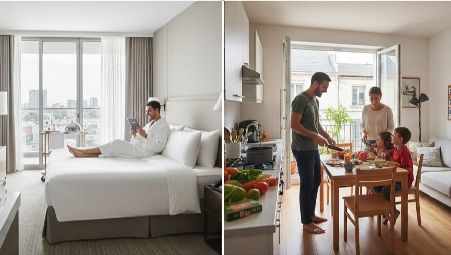 毎日清掃が基本のホテルに対し、民泊は滞在中清掃は無し。チェックアウト後に次のゲストの為に清掃するだけです。