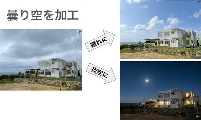 元の曇り空を晴れにもできるし夜空にも夕焼けにもできちゃいます