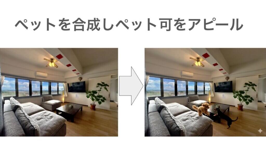 ペット可物件の場合は楽しそうにするペットを合成する事でペット可の強みをアピール!