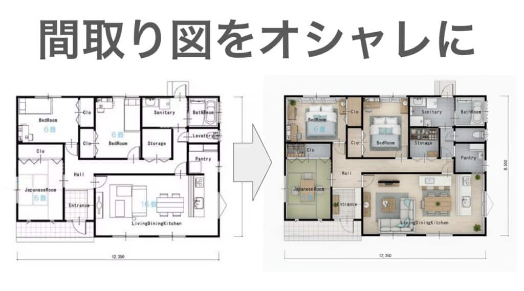 間取り図を放り込んで、「バケーションレンタルスタイルにして」と依頼するだけでおしゃれな間取り図が完成!