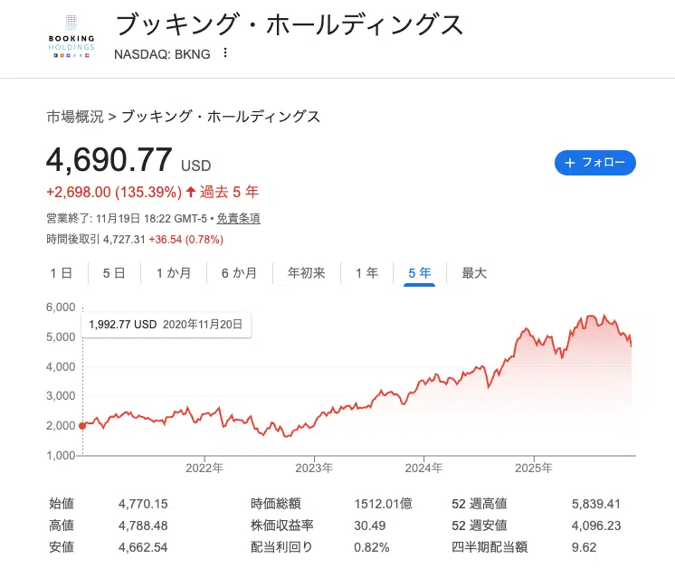 | 為替の影響(FX) | 成長率に+4〜5%の追い風 | 記載なし | BookingはFX効果が大きい |