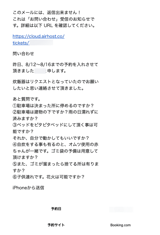 毎日のように届くゲストからの問い合わせ。